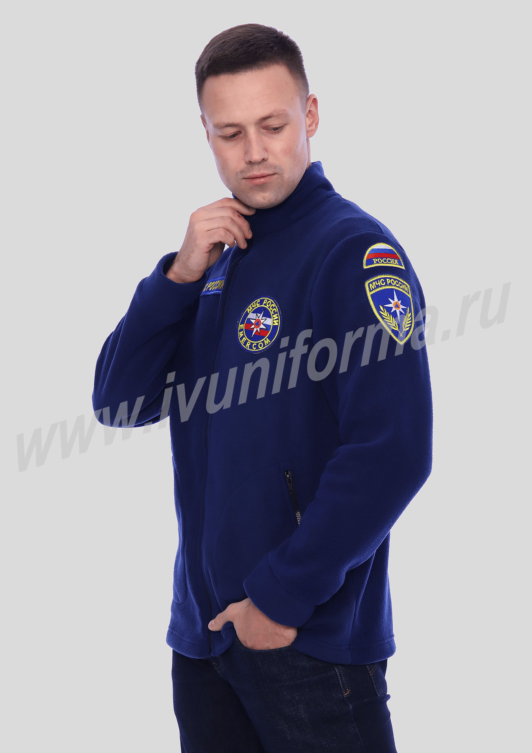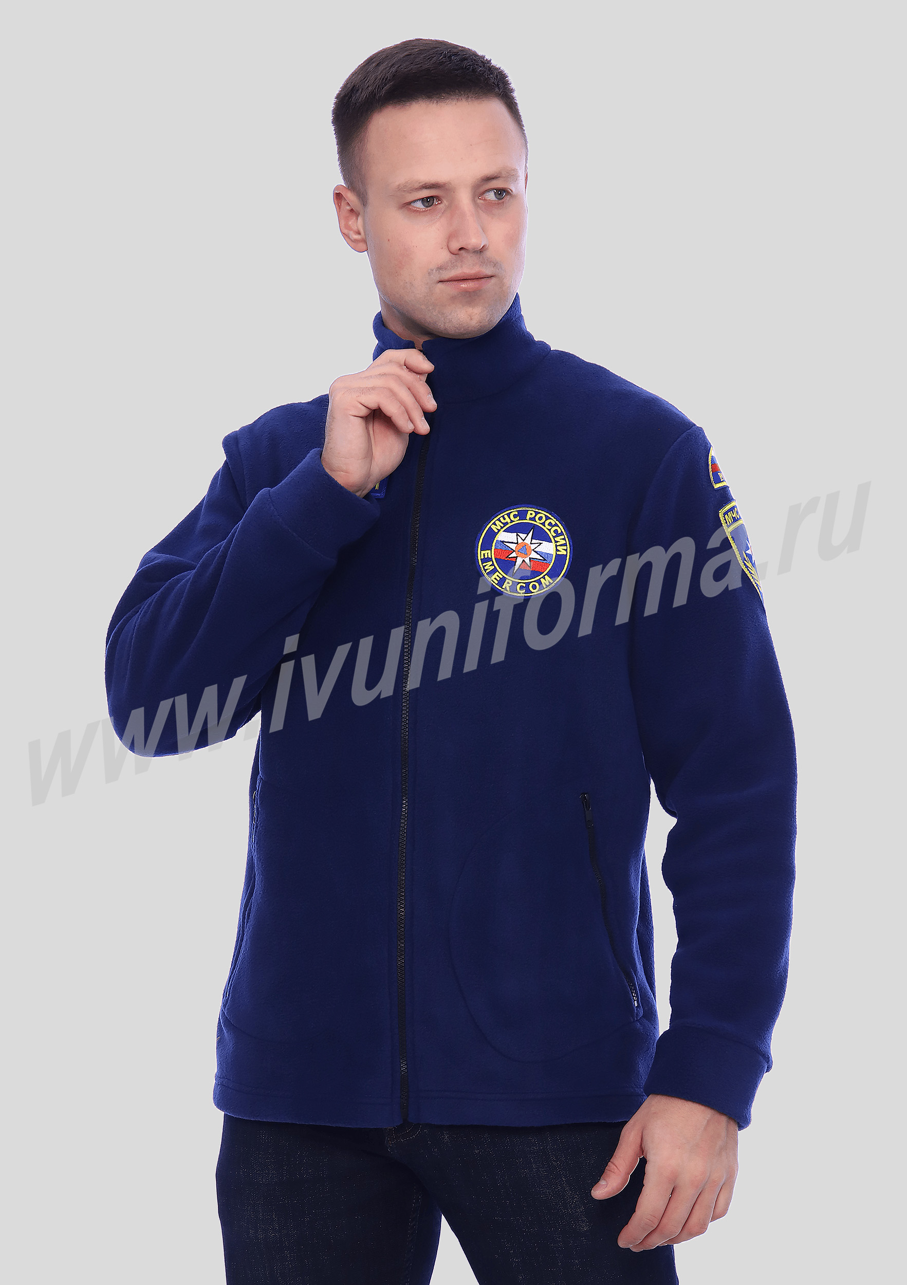 Толстовка мужская флисовая на молнии для сотрудников МЧС повышенной плотности. На груди расположены вышивка МЧС России и шеврон МЧС Emercom. На плече вшитый шеврон флаг России и нашивка МЧС нового образца. Толстовка с длинным рукавом на манжетах и карманами на молнии. Толстовка предназначена для сотрудников МЧС.